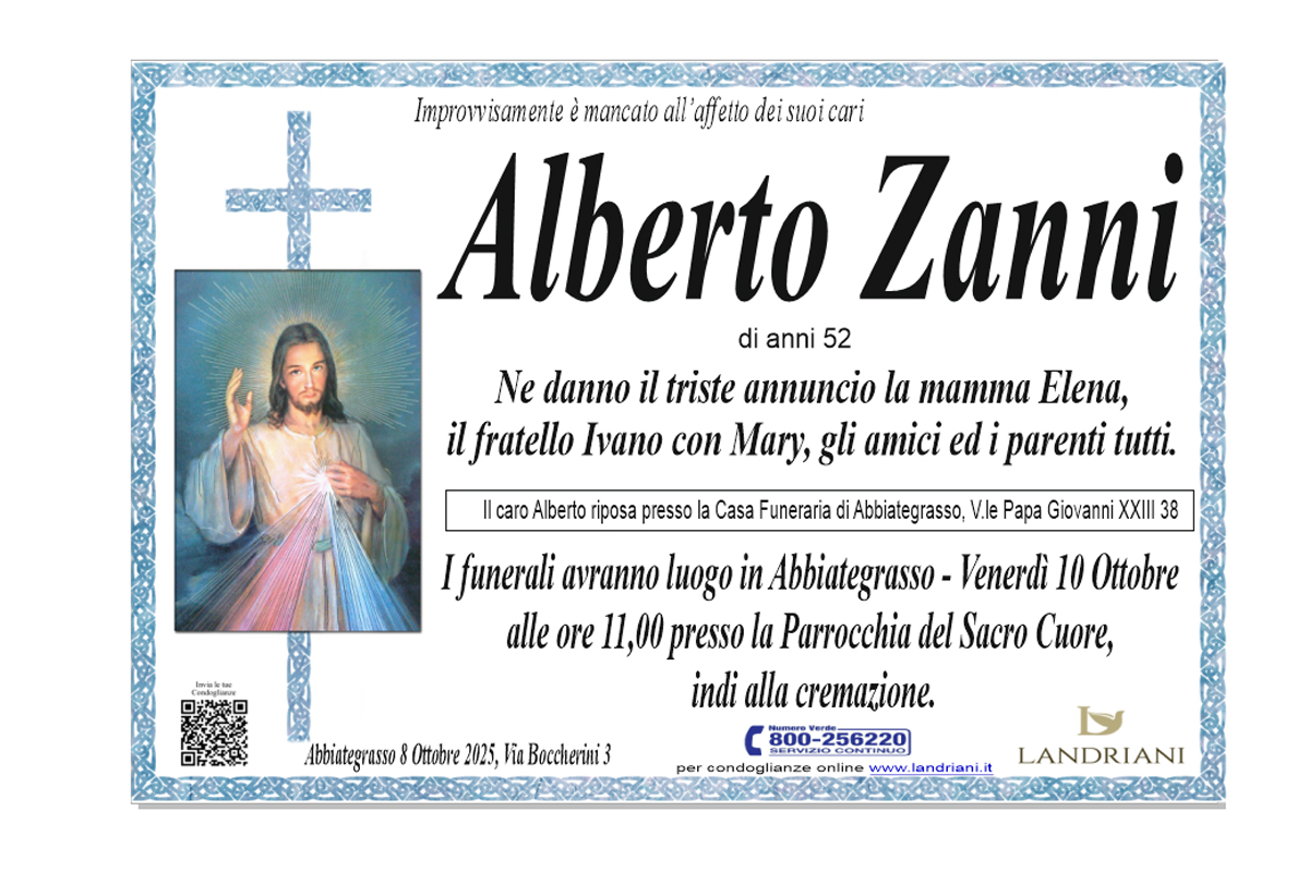 Lasciate un messaggio di cordoglio gratuito sarà nostra cura consegnarlo ai parenti di Alberto Zanni.