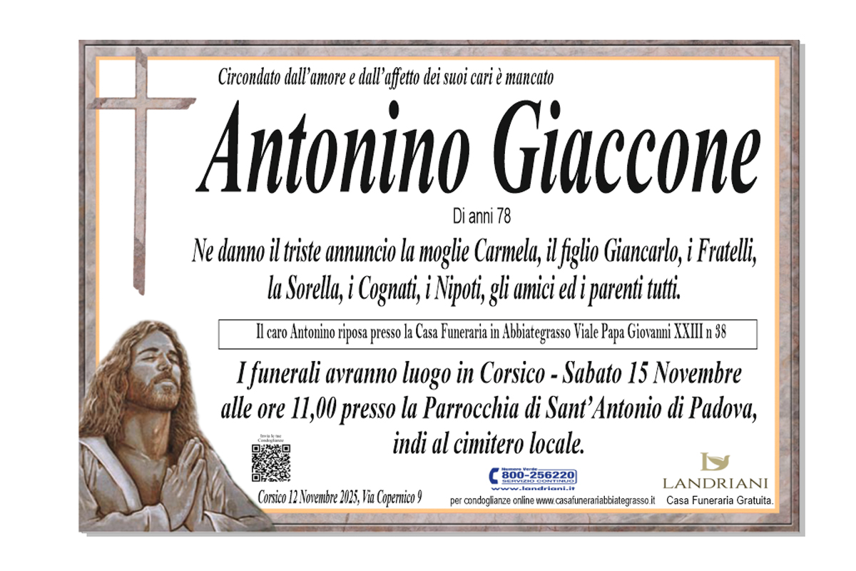 Lasciate un messaggio di cordoglio gratuito sarà nostra cura consegnarlo ai parenti di Antonino Giaccone.