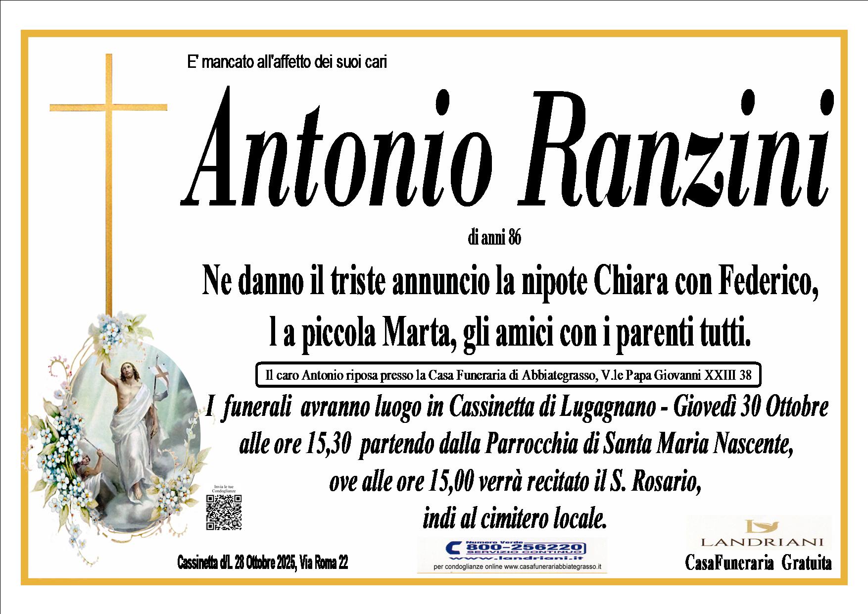 Lasciate un messaggio di cordoglio gratuito sarà nostra cura consegnarlo ai parenti di Antonio Ranzini.
