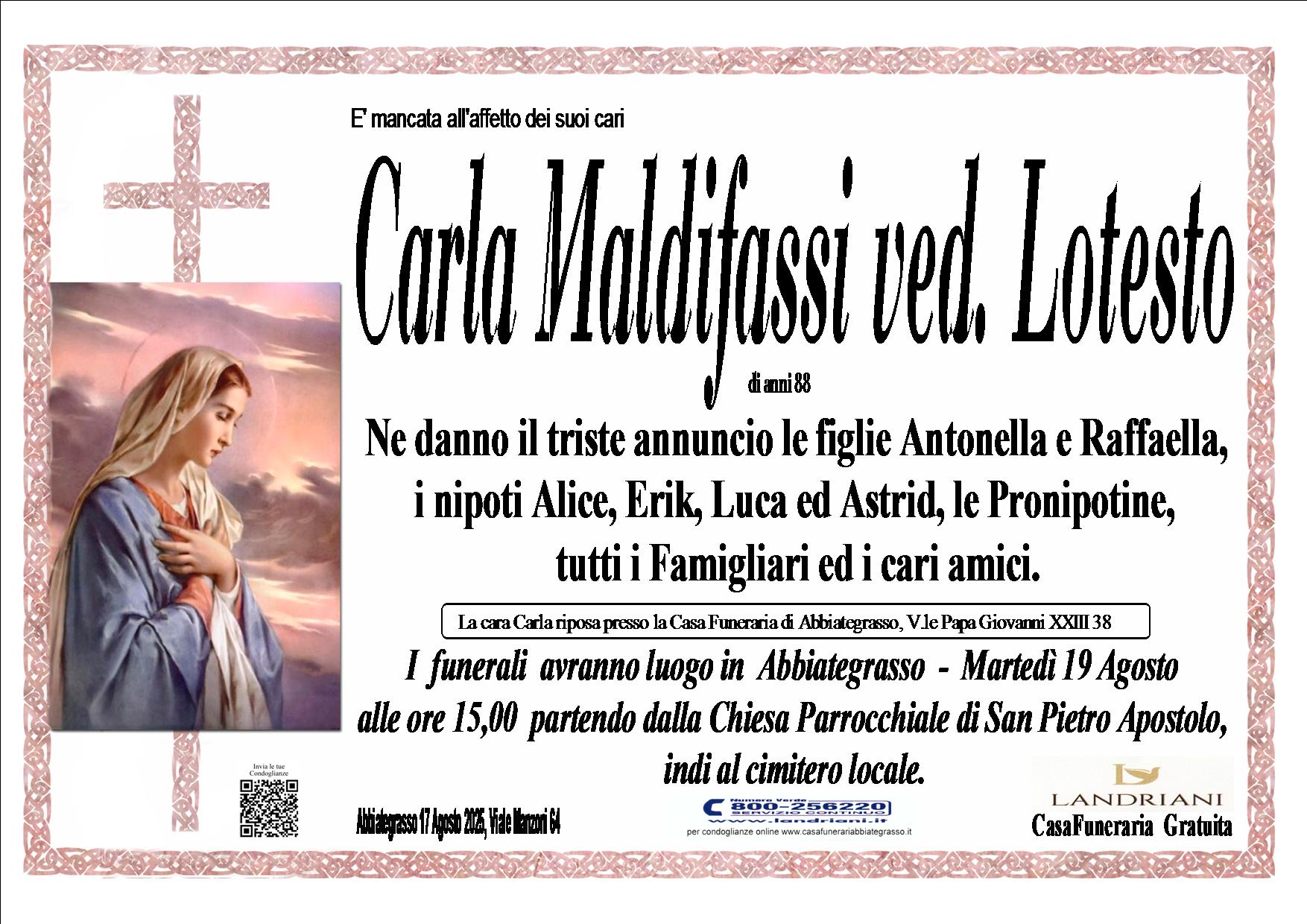 Lasciate un messaggio di cordoglio gratuito sarà nostra cura consegnarlo ai parenti di Carla Maldifassi.