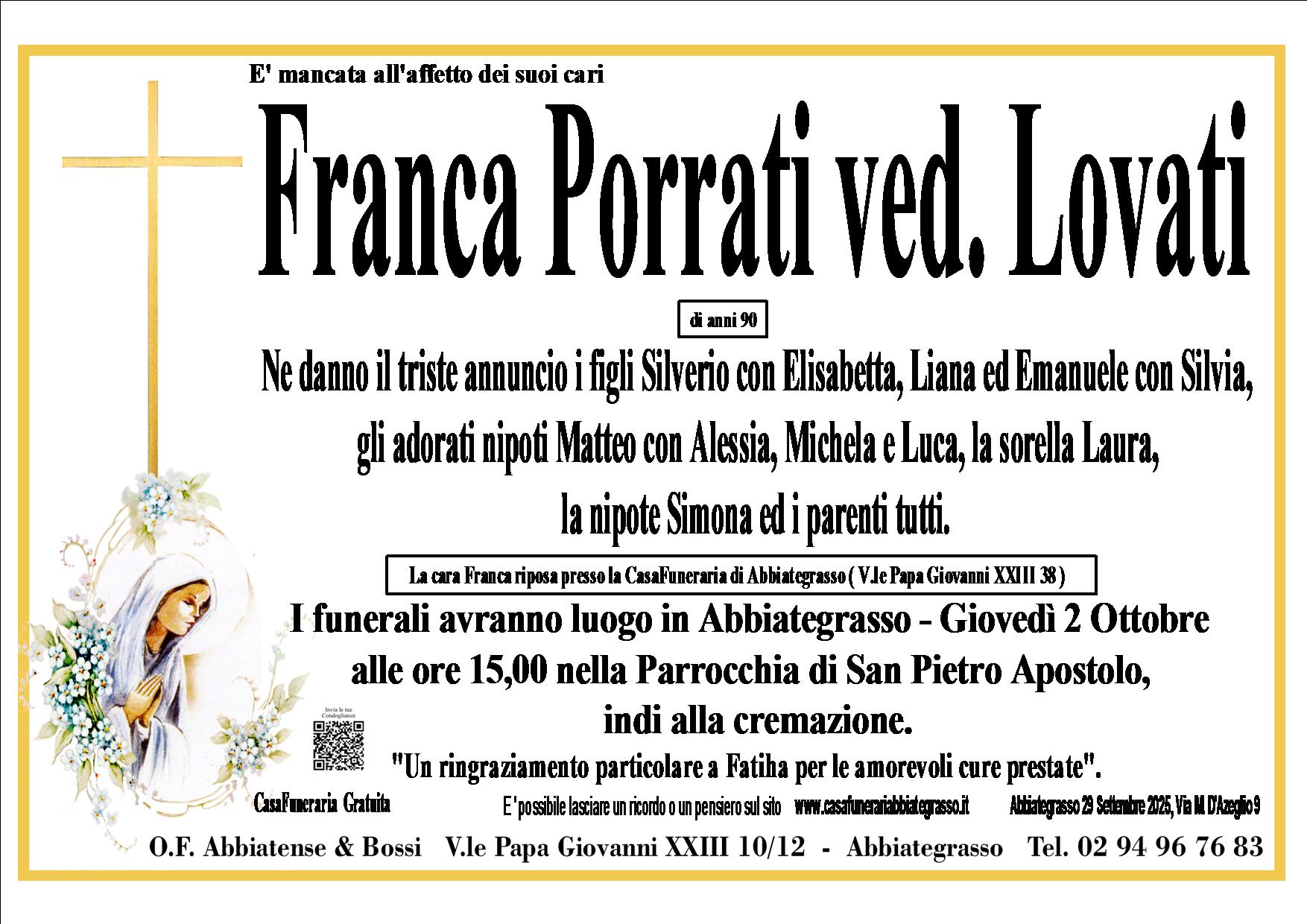 Lasciate un messaggio di cordoglio gratuito sarà nostra cura consegnarlo ai parenti di Franca Porrati.