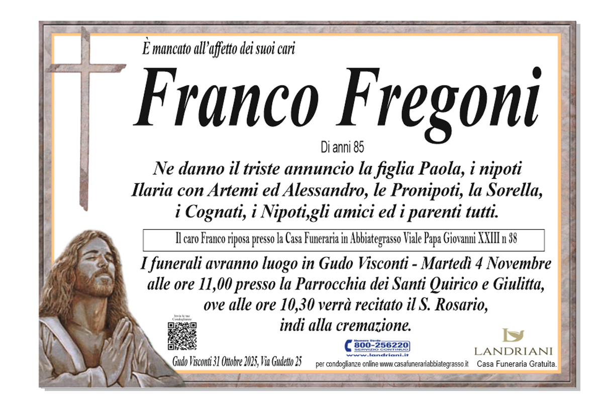 Lasciate un messaggio di cordoglio gratuito sarà nostra cura consegnarlo ai parenti di Franco Fregoni.