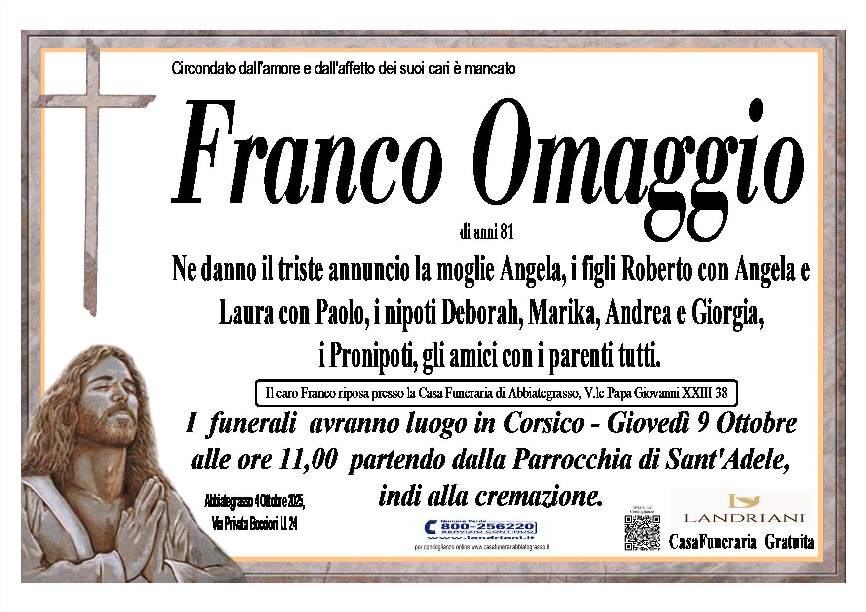 Lasciate un messaggio di cordoglio gratuito sarà nostra cura consegnarlo ai parenti di Franco Omaggio.