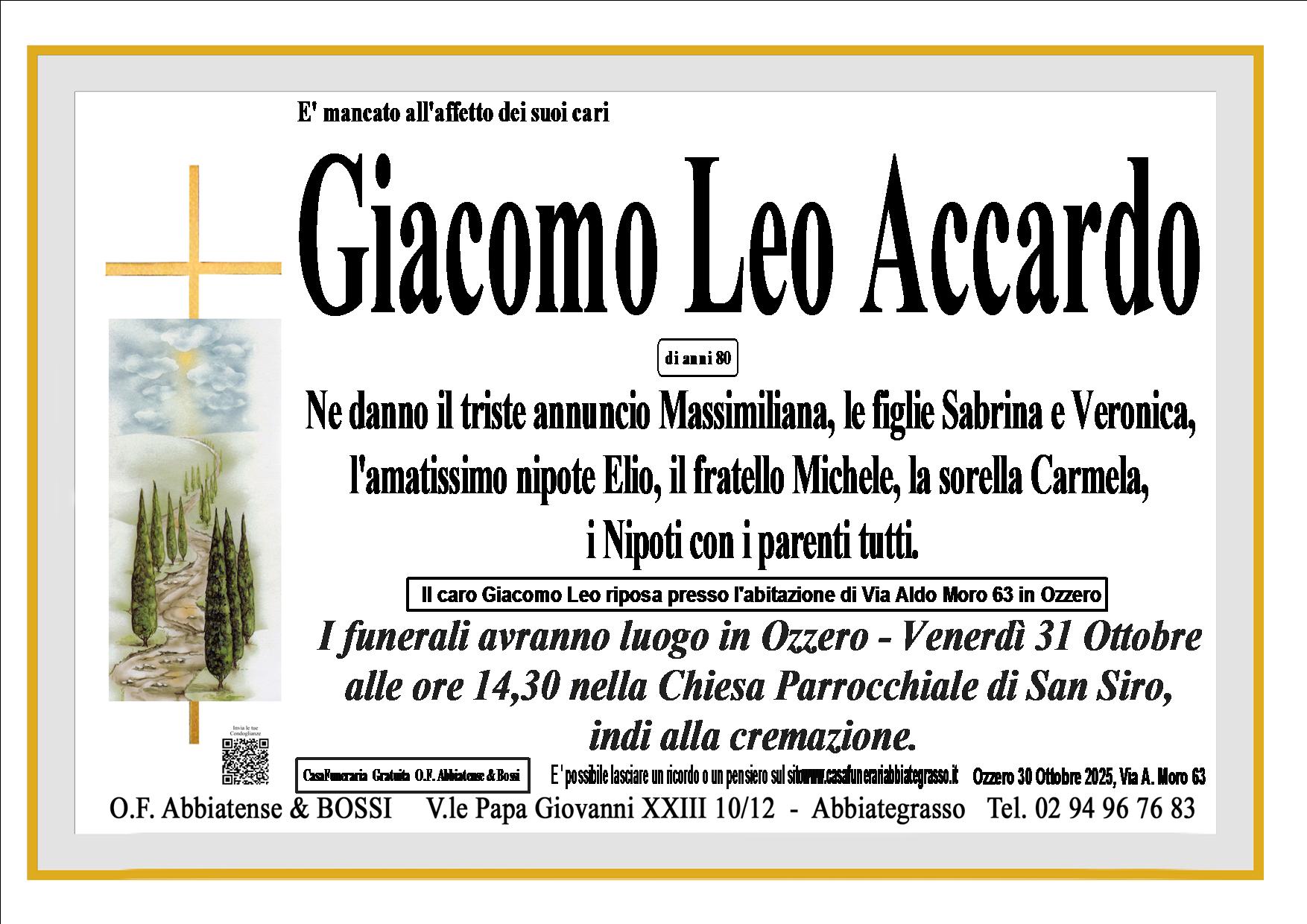 Lasciate un messaggio di cordoglio gratuito sarà nostra cura consegnarlo ai parenti di Giacomo Leo Accardo.