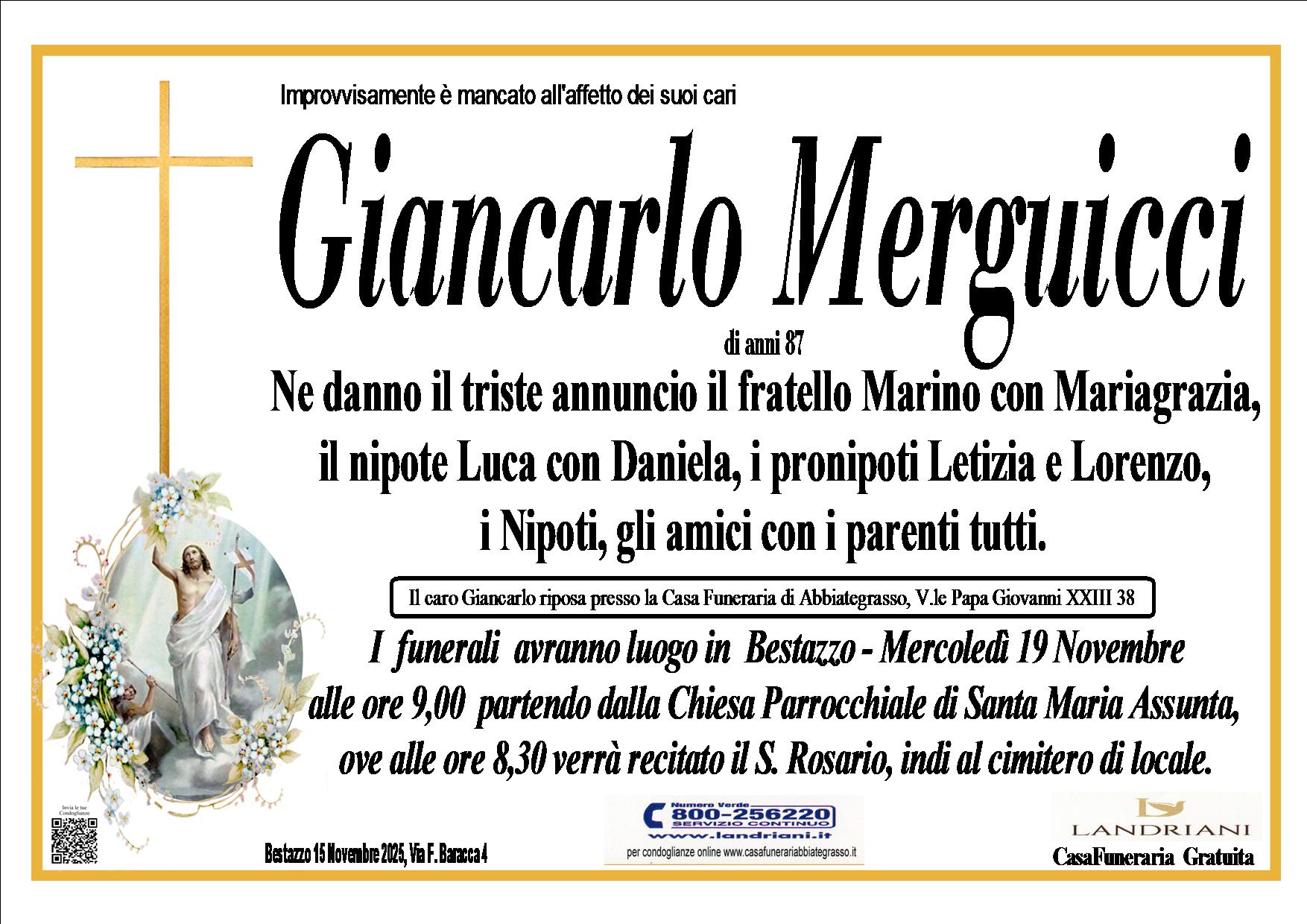 Lasciate un messaggio di cordoglio gratuito sarà nostra cura consegnarlo ai parenti di Giancarlo Merguicci.