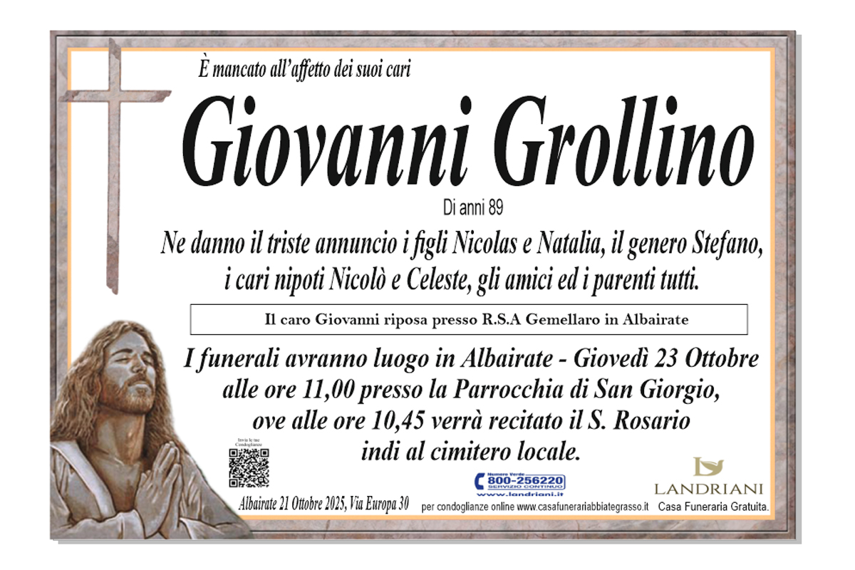 Lasciate un messaggio di cordoglio gratuito sarà nostra cura consegnarlo ai parenti di Giovanni Grollino.