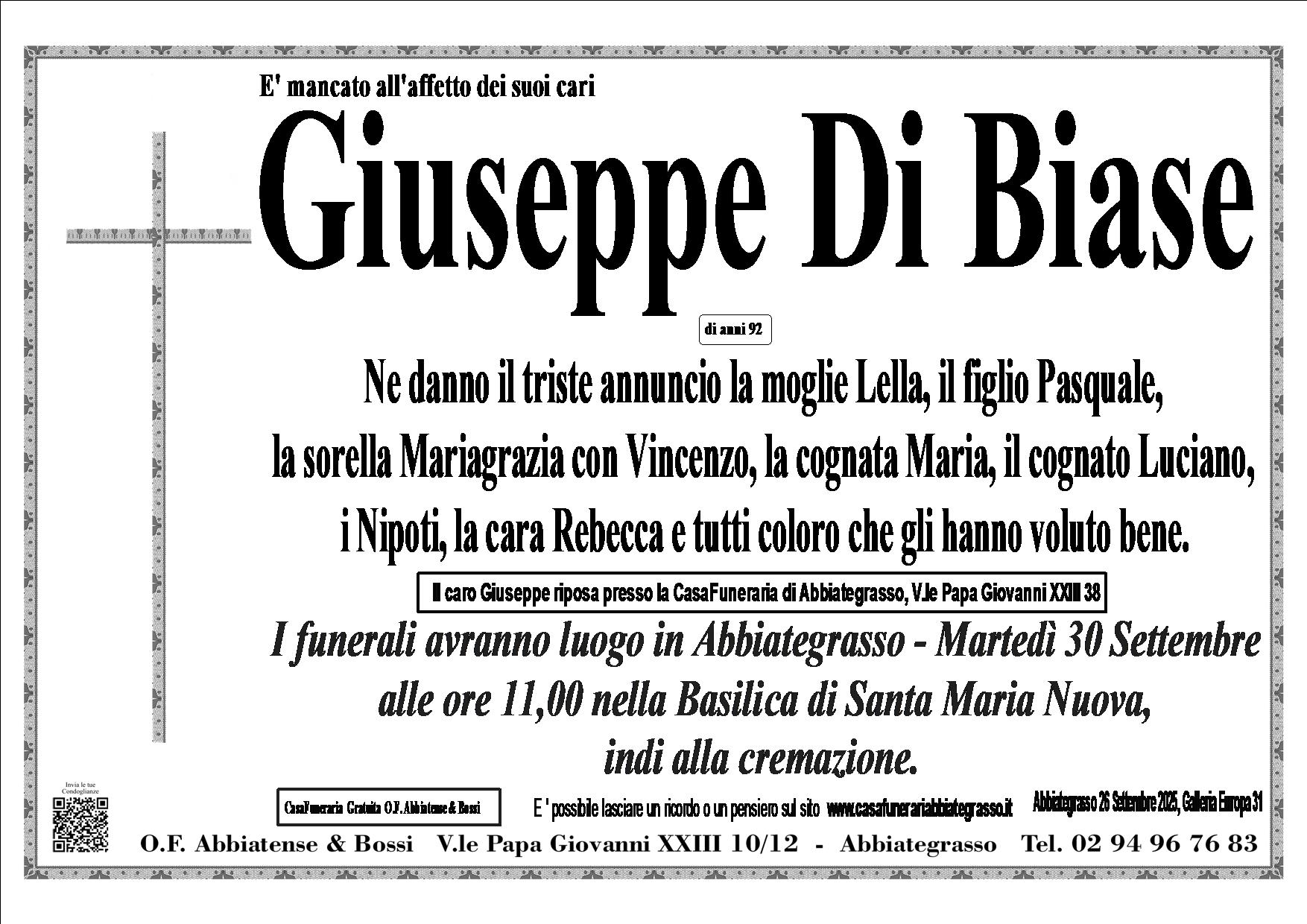 Lasciate un messaggio di cordoglio gratuito sarà nostra cura consegnarlo ai parenti di Giuseppe Di Biase.