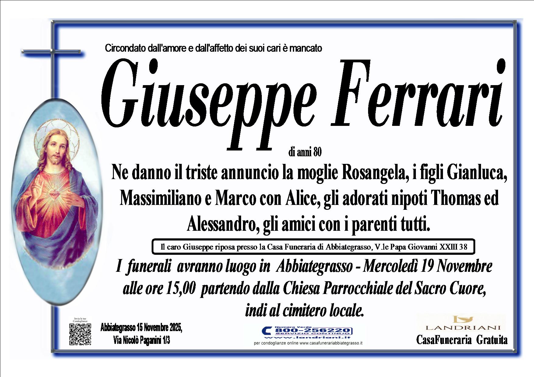 Lasciate un messaggio di cordoglio gratuito sarà nostra cura consegnarlo ai parenti di Giuseppe Ferrari.