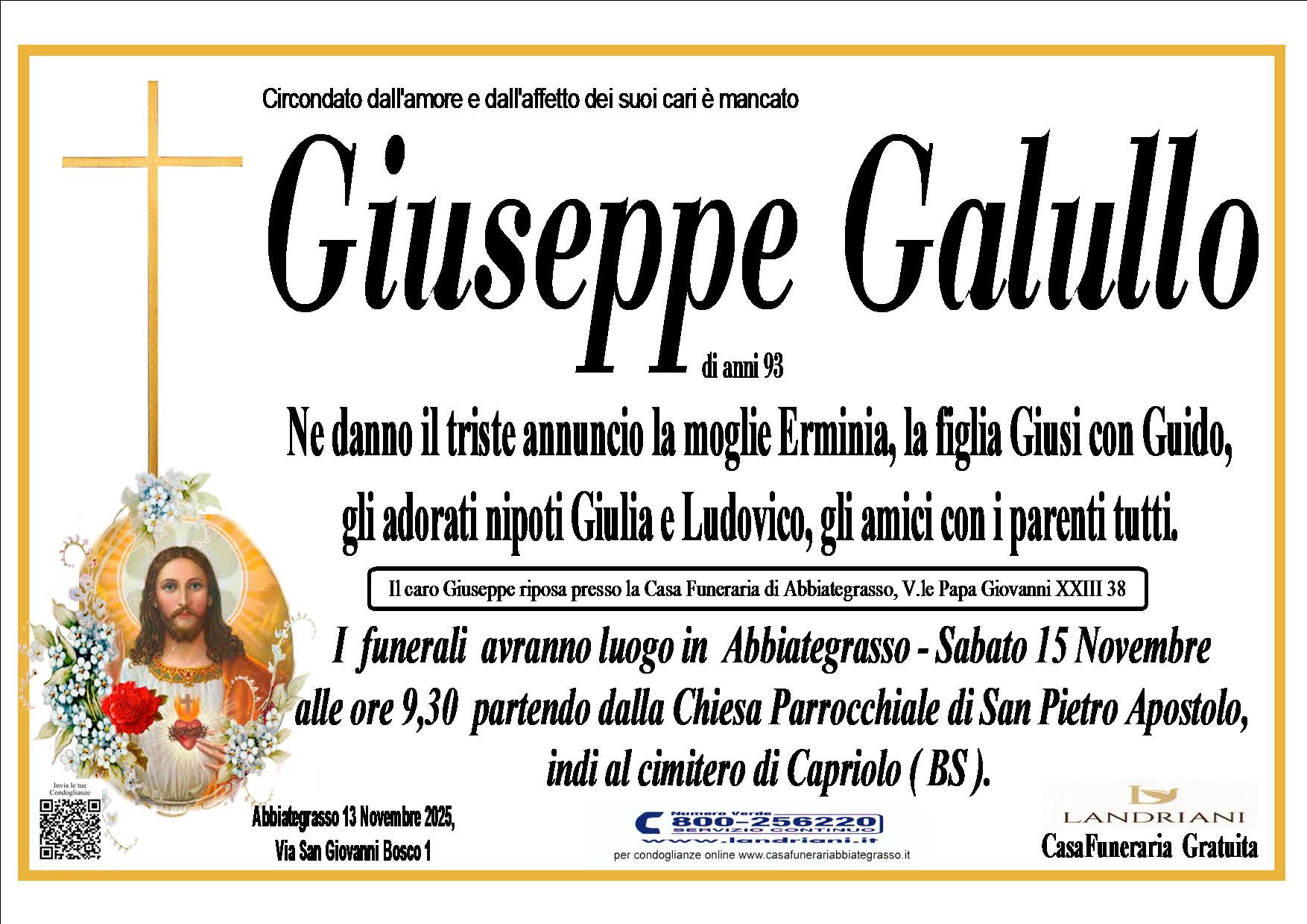 Lasciate un messaggio di cordoglio gratuito sarà nostra cura consegnarlo ai parenti di Giuseppe Galullo.