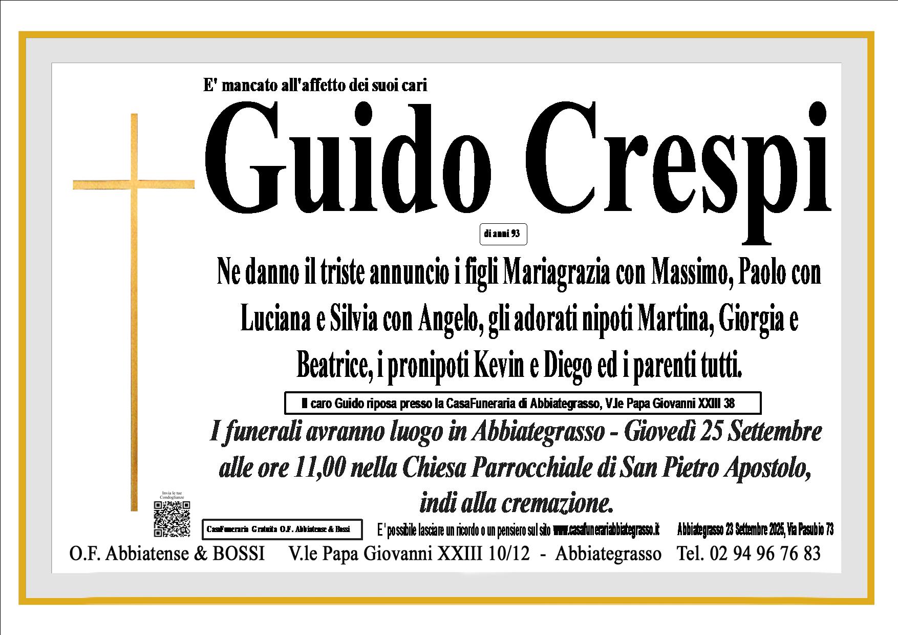 Lasciate un messaggio di cordoglio gratuito sarà nostra cura consegnarlo ai parenti di Guido Crespi.