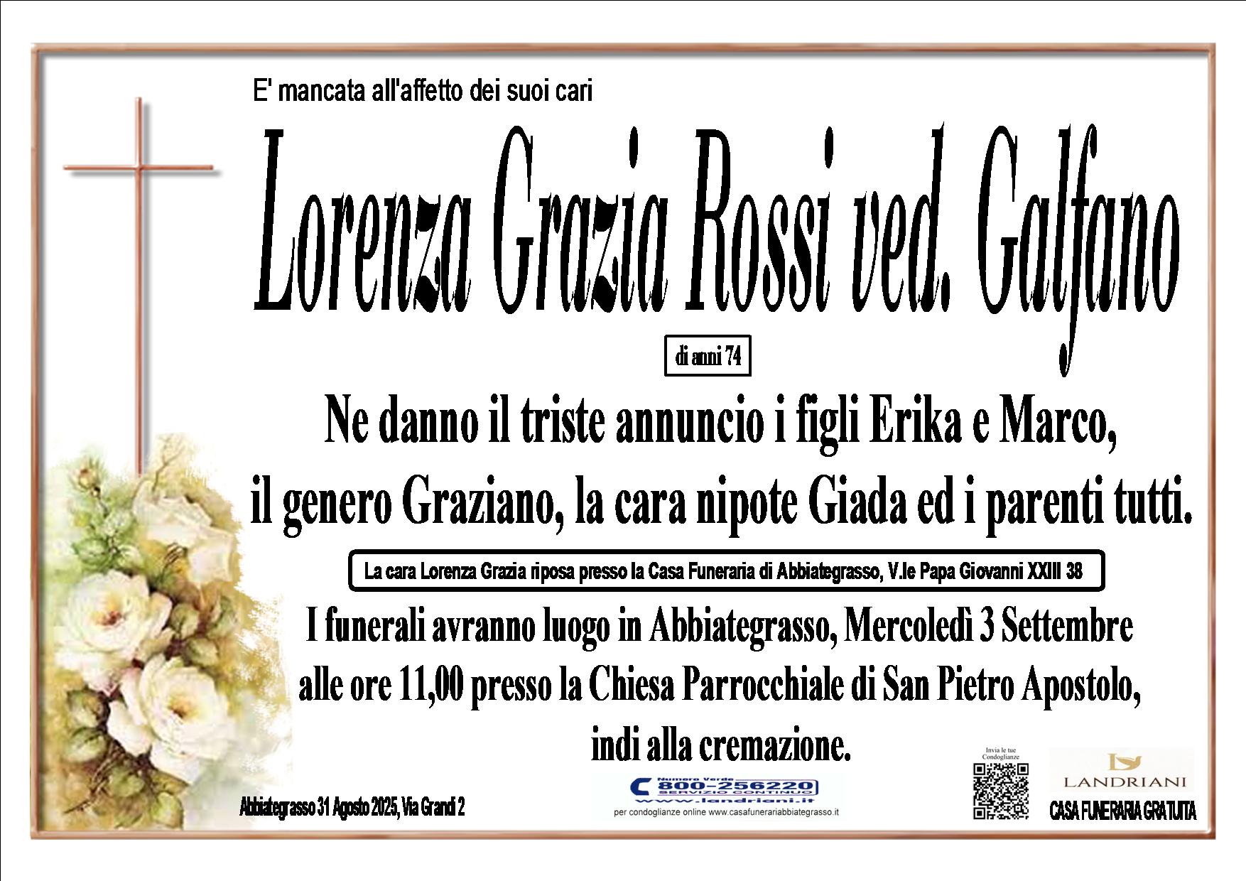 Lasciate un messaggio di cordoglio gratuito sarà nostra cura consegnarlo ai parenti di Lorenza Grazia Rossi.