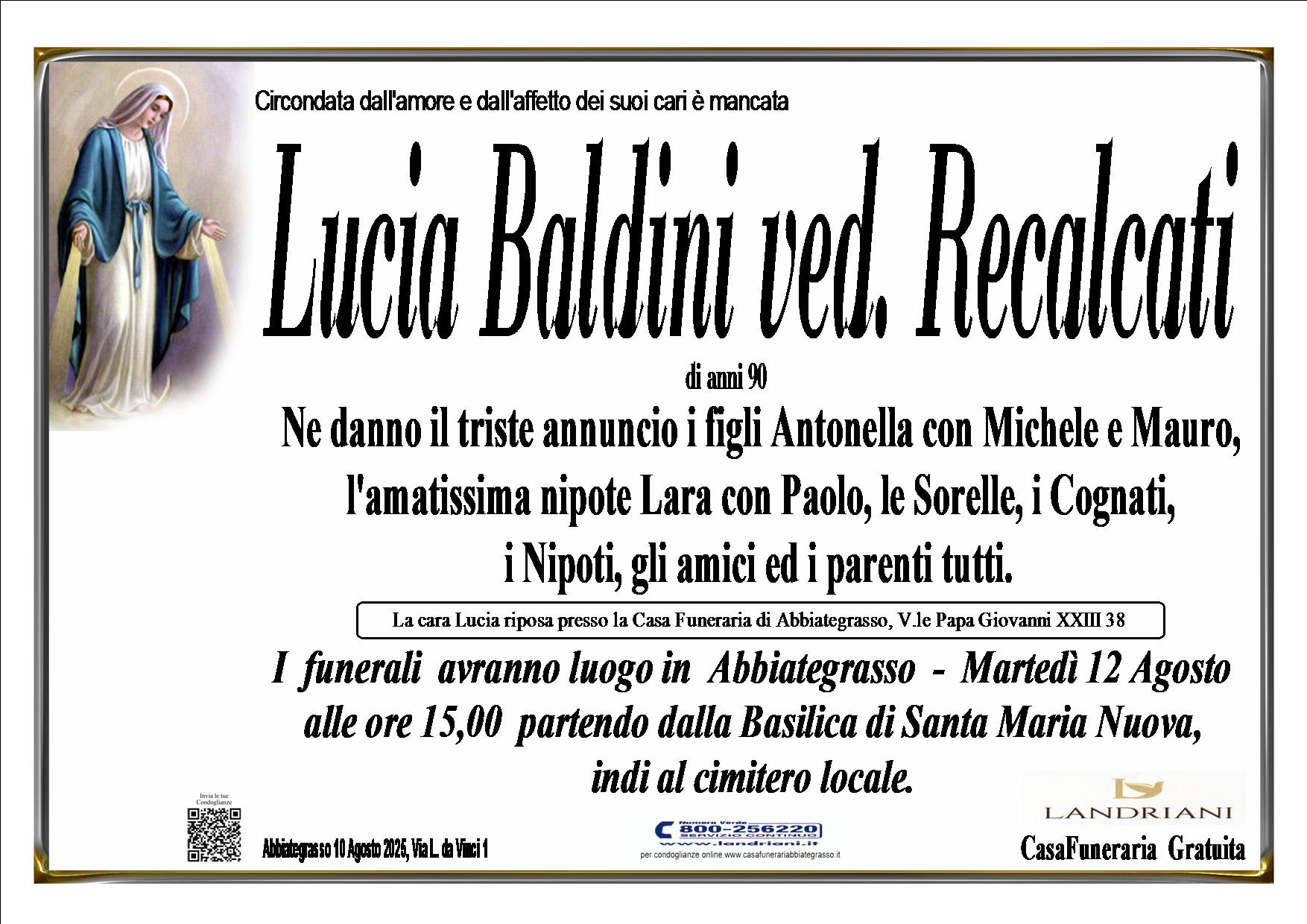 Lasciate un messaggio di cordoglio gratuito sarà nostra cura consegnarlo ai parenti di Lucia Baldini.