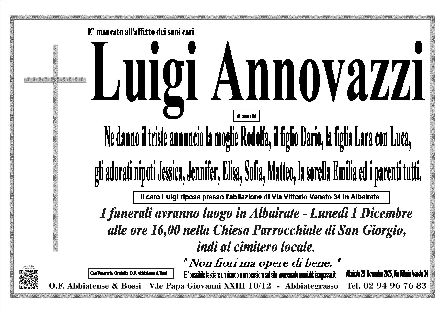 Lasciate un messaggio di cordoglio gratuito sarà nostra cura consegnarlo ai parenti di Luigi Annovazzi.