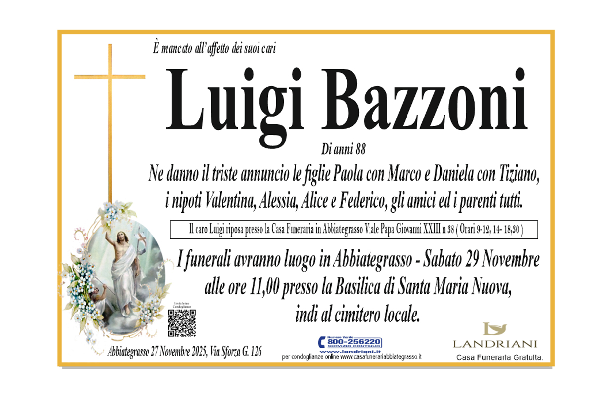 Lasciate un messaggio di cordoglio gratuito sarà nostra cura consegnarlo ai parenti di Luigi Bazzoni.