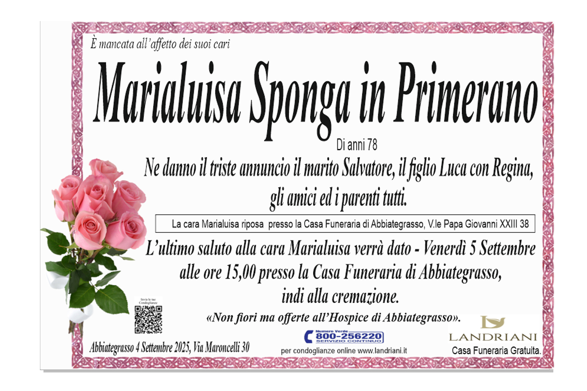 Lasciate un messaggio di cordoglio gratuito sarà nostra cura consegnarlo ai parenti di Marialuisa Sponga.