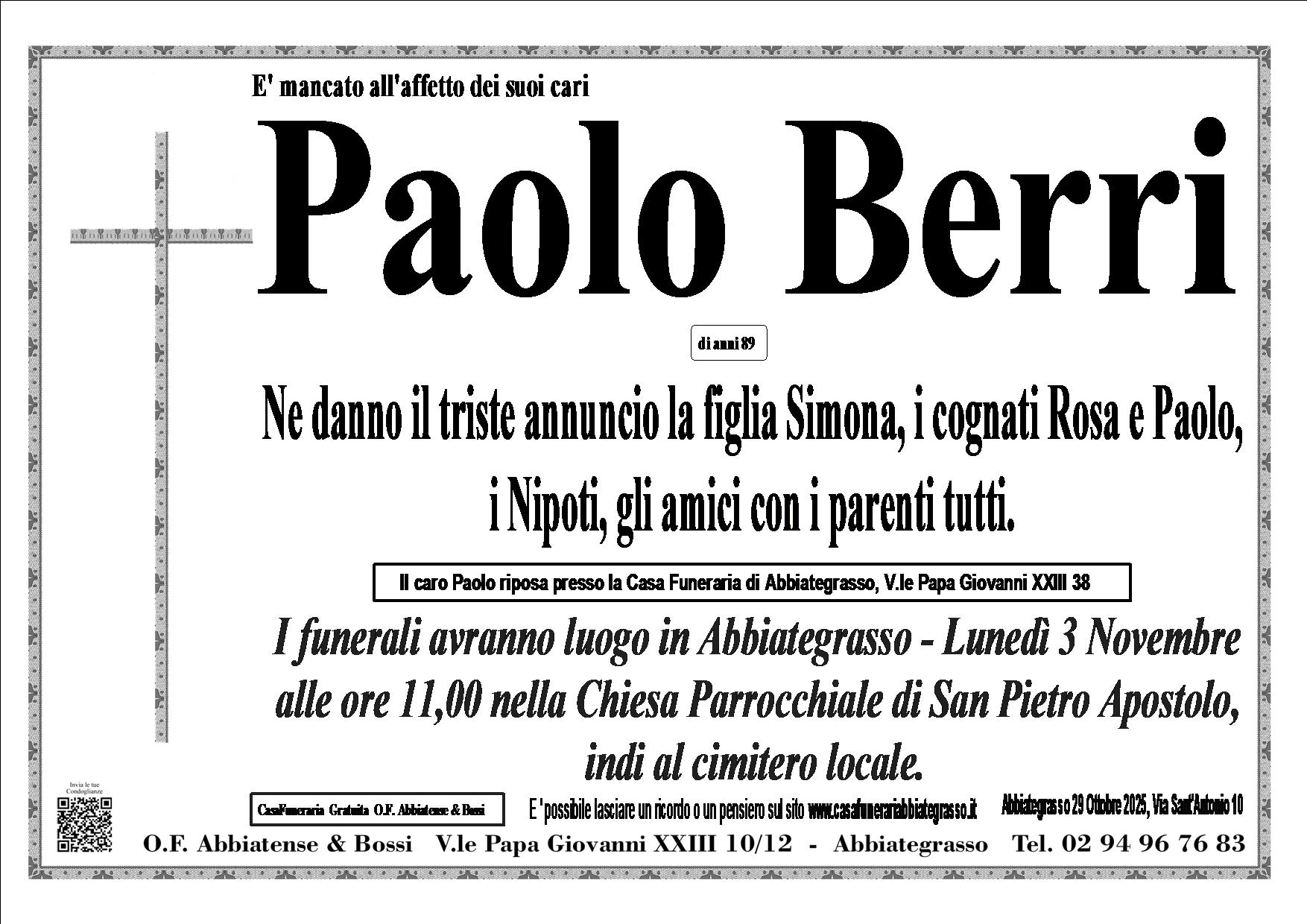 Lasciate un messaggio di cordoglio gratuito sarà nostra cura consegnarlo ai parenti di Paolo Berri.