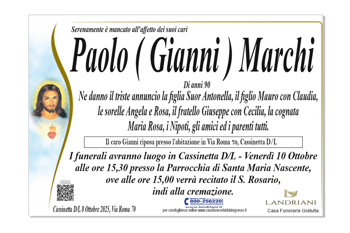 Lasciate un messaggio di cordoglio gratuito sarà nostra cura consegnarlo ai parenti di Paolo Marchi.