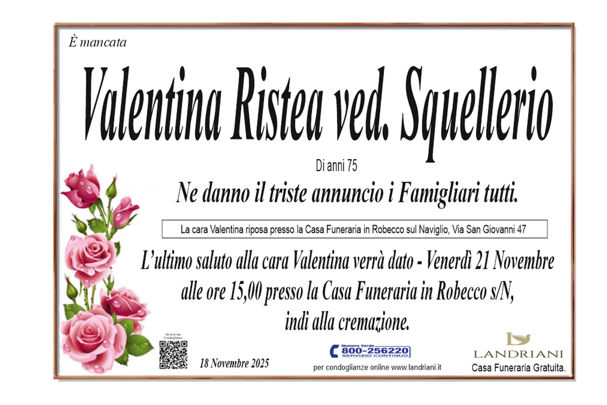 Lasciate un messaggio di cordoglio gratuito sarà nostra cura consegnarlo ai parenti di Valentina Ristea.